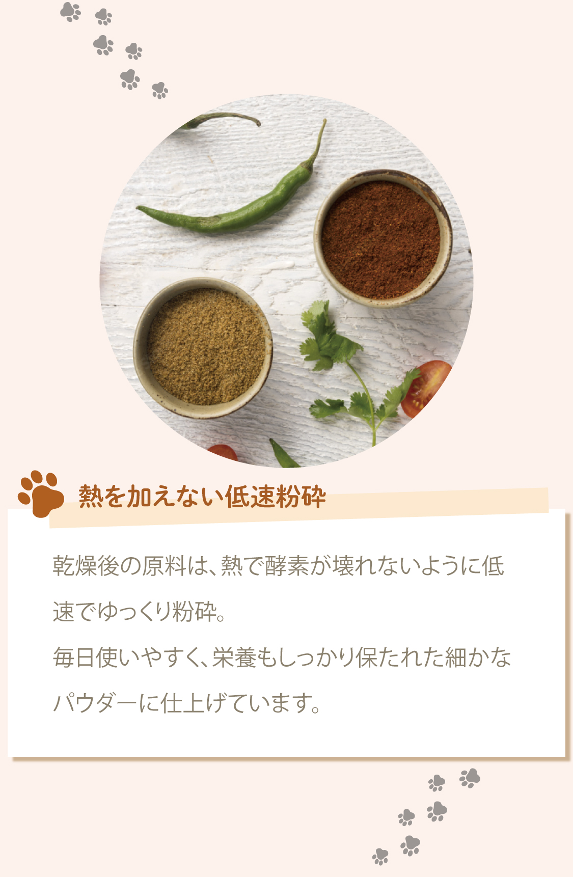 「加熱しない、壊さない。自然のままの“生きた酵素”で、愛犬・愛猫の体がよろこぶひとふり。」