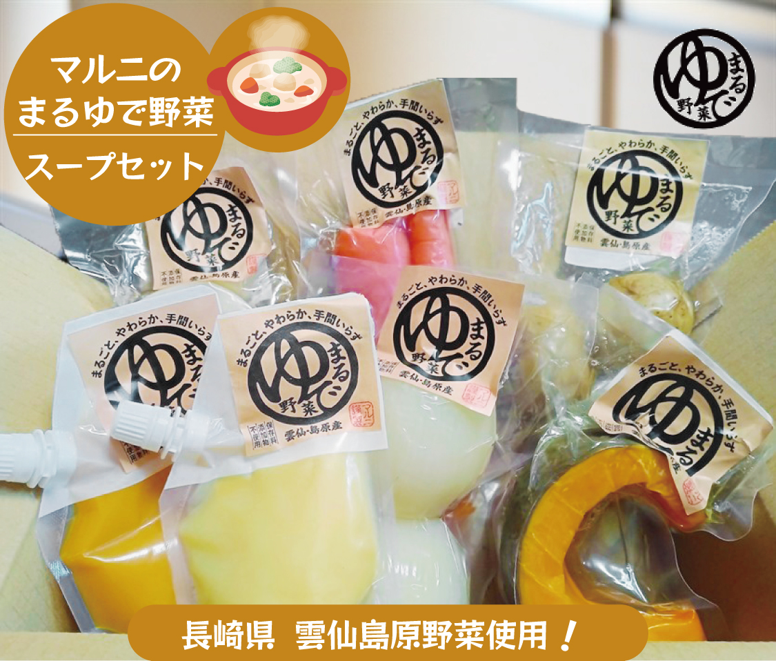 【ブラックフライデー!マルニのあったかほっこりスープセット】 <セット内容> まるゆで野菜:じゃがいも、大根、人参、玉ねぎ、かぼちゃ まるゆで野菜ペースト:じゃがいも、かぼちゃ ブラックフライデー限定:ペースト50g増量! 販売期間:2025年12月3日(23:59まで) ~Metrondの皆様へ~ 根菜が美味しくなるこれからの季節! 長崎の雲仙島原野菜を原料にしお、さとう、味を加えず、栄養を閉じ込め美味しさをアップした野菜をお届けします。 完全に火が通ったお野菜ですので、手軽にお料理ができます。(もちろんそのまま食べても大丈夫です) ポタージュスープ・シチュー・コンソメスープ・ポトフ・五目汁・味噌汁など…下茹での手間いらずで、あったかほっこり楽しい食卓を囲んでください。