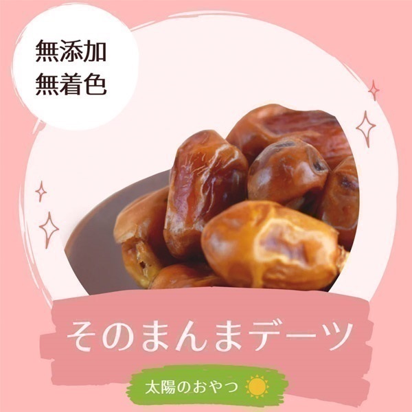 デーツは「ナツメヤシ」という木の果実で、砂漠のような灼熱の土地で、太陽の光によって成長します。