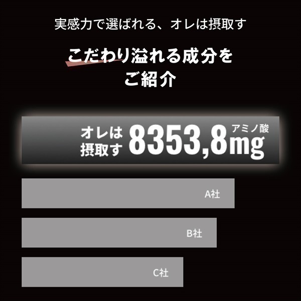 ・アミノ酸 8.353mg (BCAA 3,870mg その他アミノ酸 4,483mg)