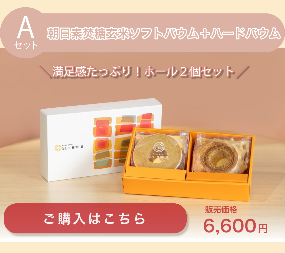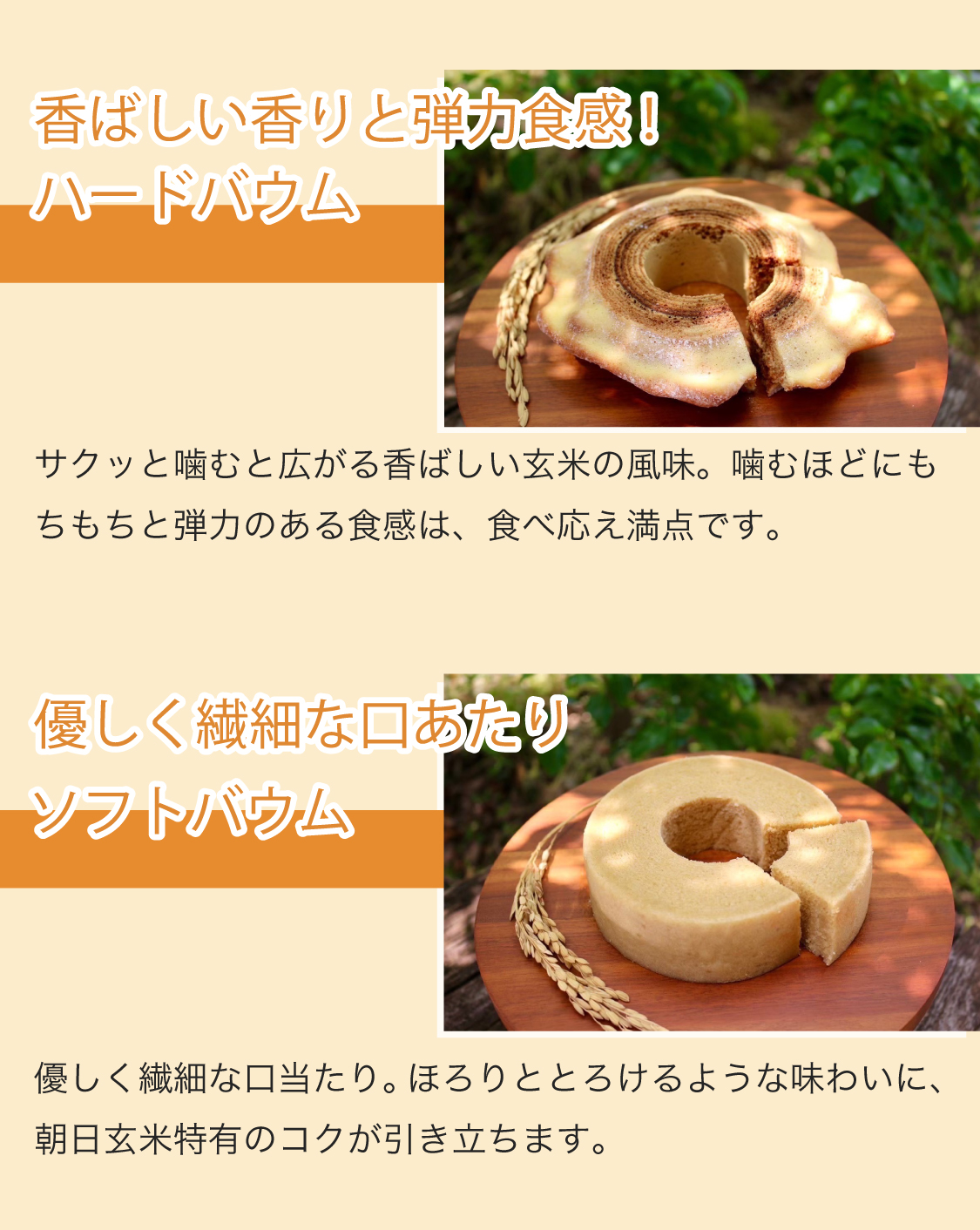 【贈答品におすすめ】” グルテンフリー朝日素焚糖玄米バウムクーヘンセット”(Aセット:朝日素焚糖玄米ソフト&ハードホール)
