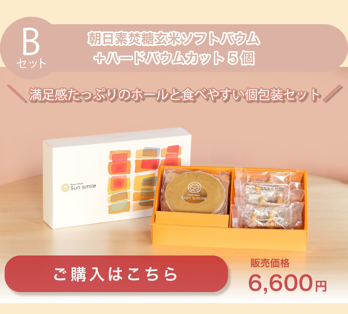 【贈答品におすすめ】” グルテンフリー朝日素焚糖玄米バウムクーヘンセット”(Bセット:朝日素焚糖玄米ソフトホール&ハードカット5個)