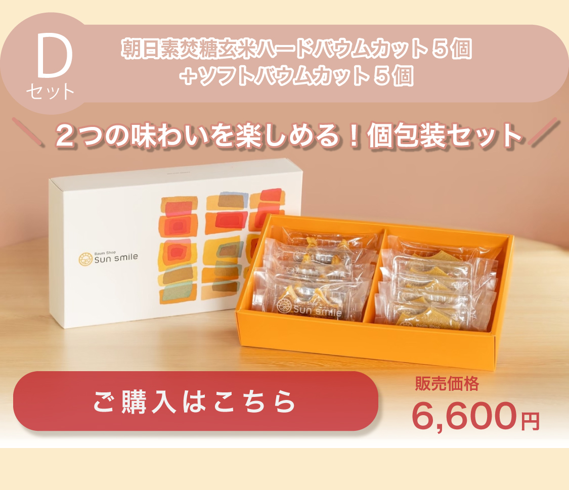 【贈答品におすすめ】” グルテンフリー朝日素焚糖玄米バウムクーヘンセット”(Dセット:朝日素焚糖玄米ハードカット5個&ソフトカット5個)
