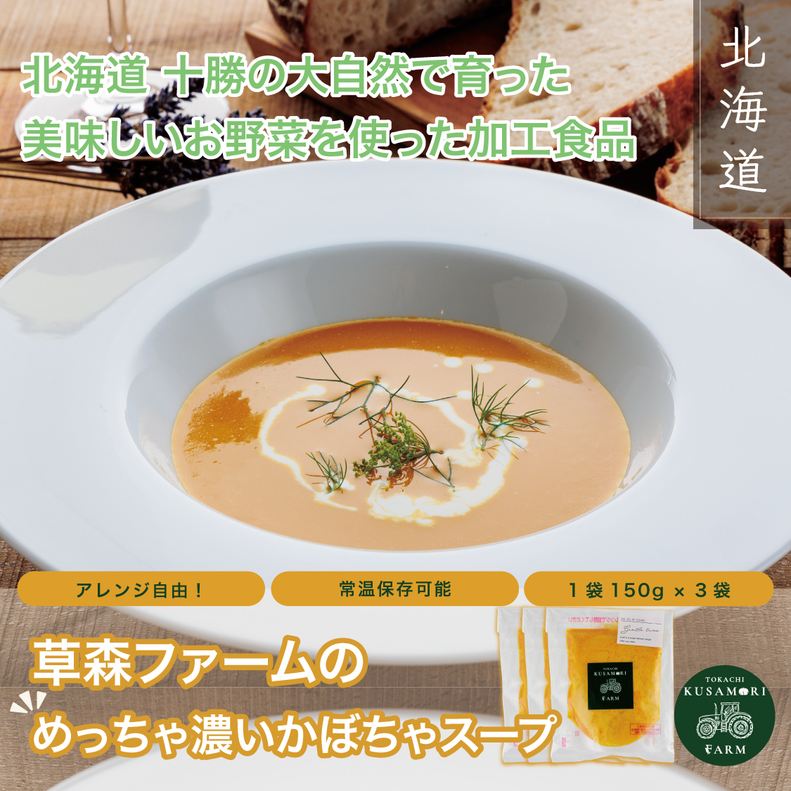 【草森ファームのめっちゃ濃いかぼちゃスープ】150g/1袋×3