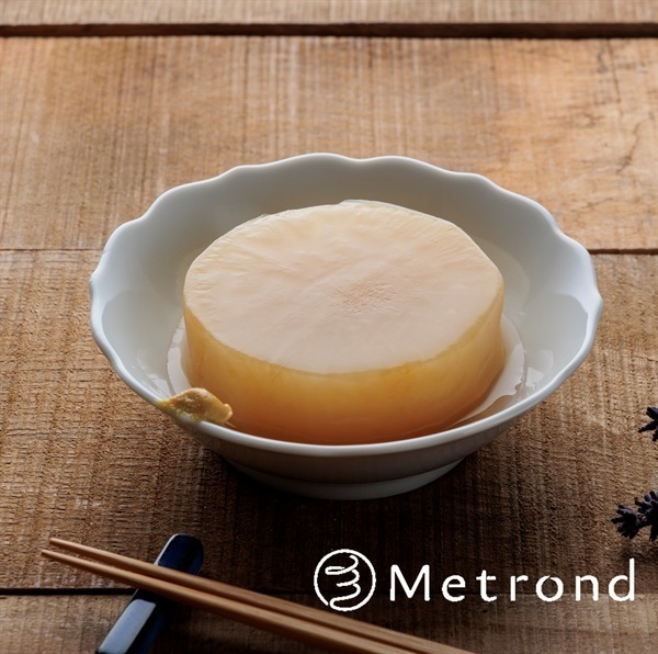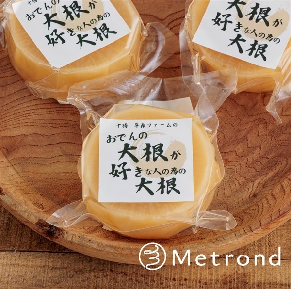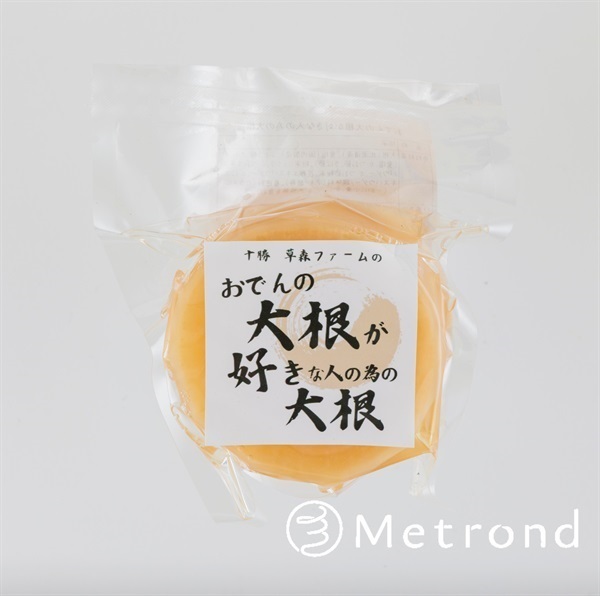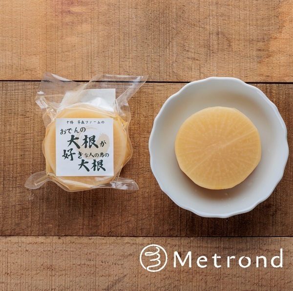 ちょっと硬めにゆでていて、煮崩れないような大根。そのため、味が染み染みの大根好きにはたまらない一品に仕上げました。湯煎で温めてちょうどいいレトルト加工しています。冷たいままでも美味しくお召し上がりいただけます。