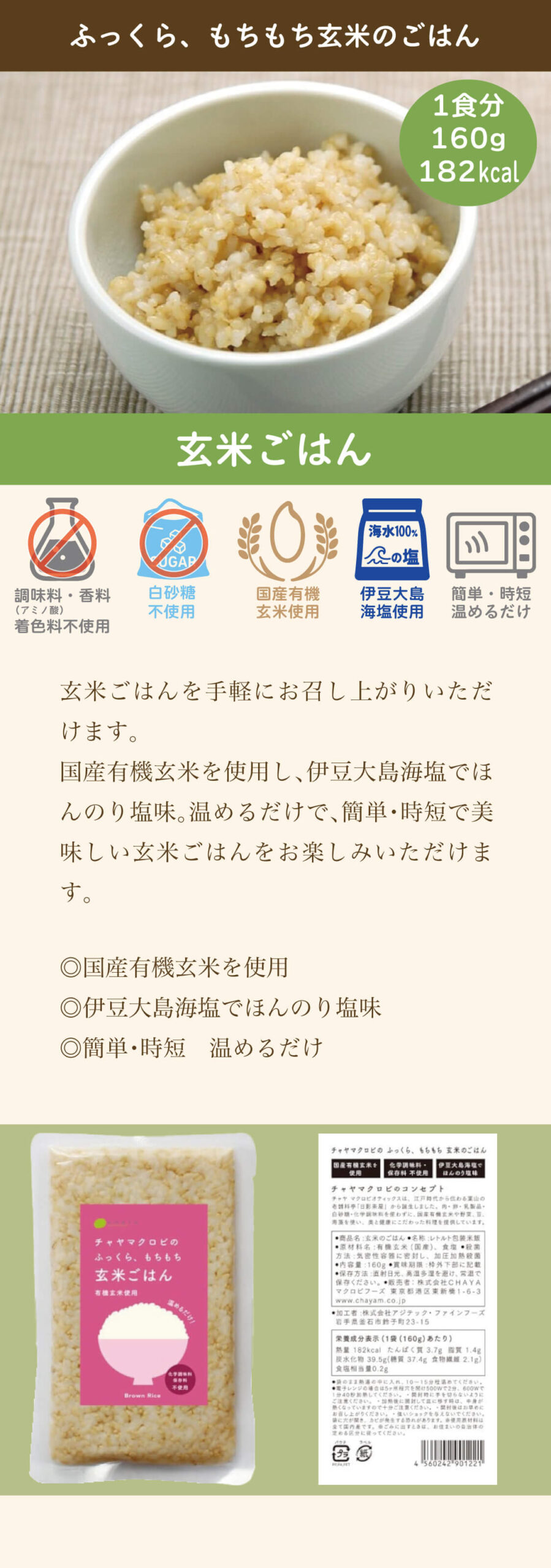 有機玄米(国産)、食塩