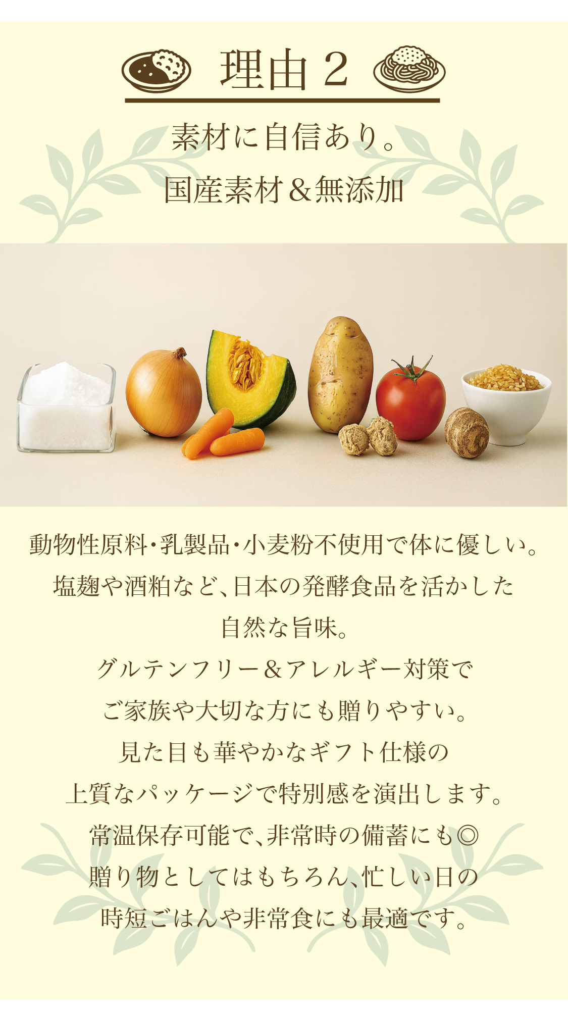野菜(人参、椎茸)、粒状大豆たん白(国内製造)、ローストオニオン、トマトペースト、かぼちゃペースト、米飴、赤ワイン、人参ペースト、オリーブ油、にんにくペースト、食塩、米酢、白菜エキス、馬鈴薯でん粉、味噌、酵母エキス、生姜ペースト、香辛料、昆布粉末、(一部に大豆を含む)