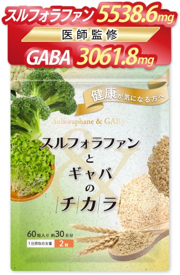 【医師監修・GMP工場製造】 スルフォラファンとギャバのチカラ 1袋60粒(約1か月分)