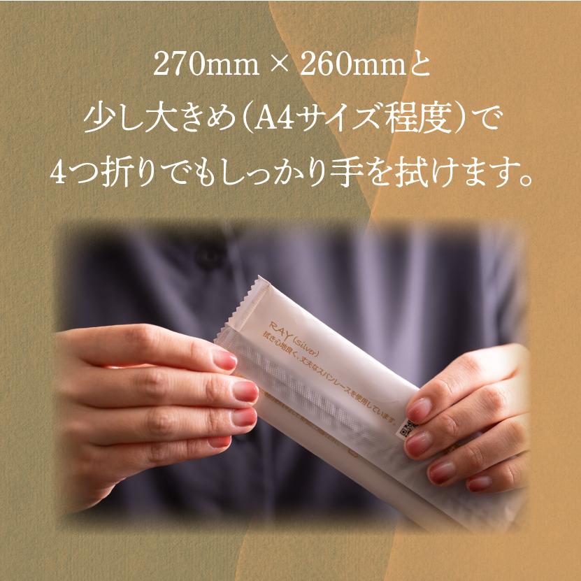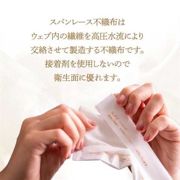 肌触りが良く、丈夫なスパンレースを使用、破れにくく、細かいくずも出ません。A4サイズに近い270×260㎜の大判サイズでしっかり拭けます。2層のマットフィルム高級感と長期保存を実現しました。