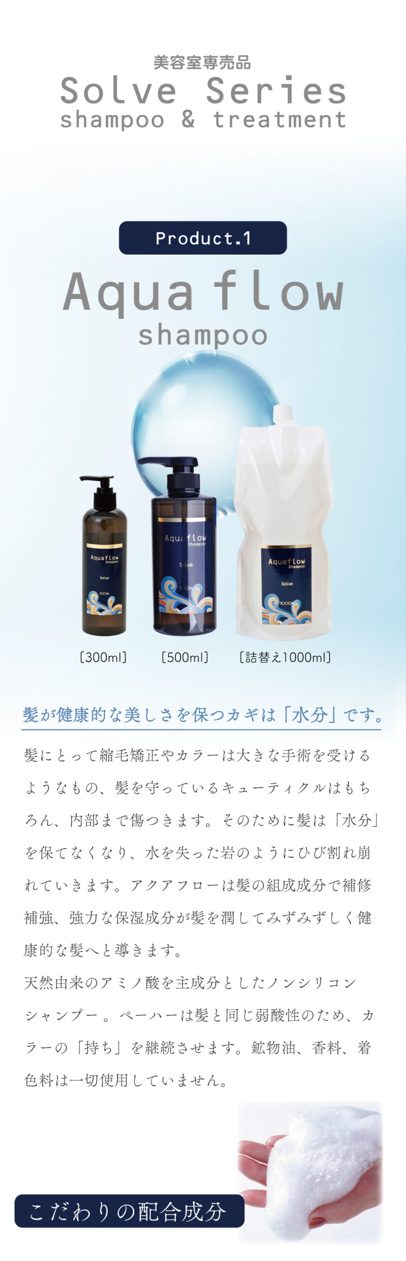 【美容室専売品】 ソルブシャンプー アクアフロー縮毛矯正・カラーで傷んだ髪専用 髪質改善シャンプー