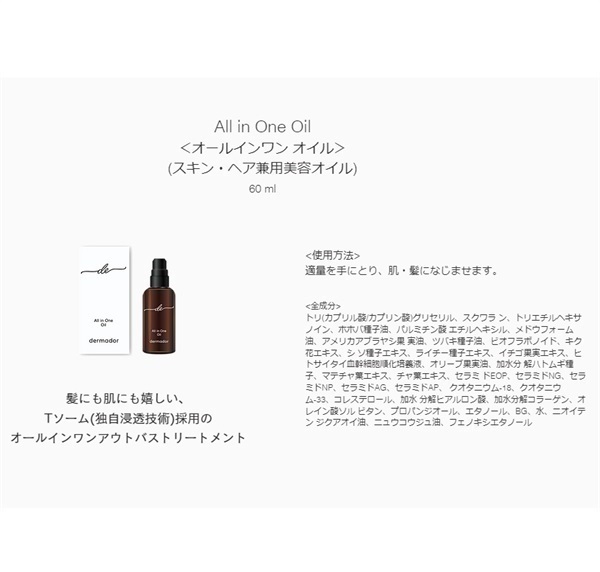 | All in One Oil(オールインワン オイル-スキン・ヘア兼用美容オイル) |