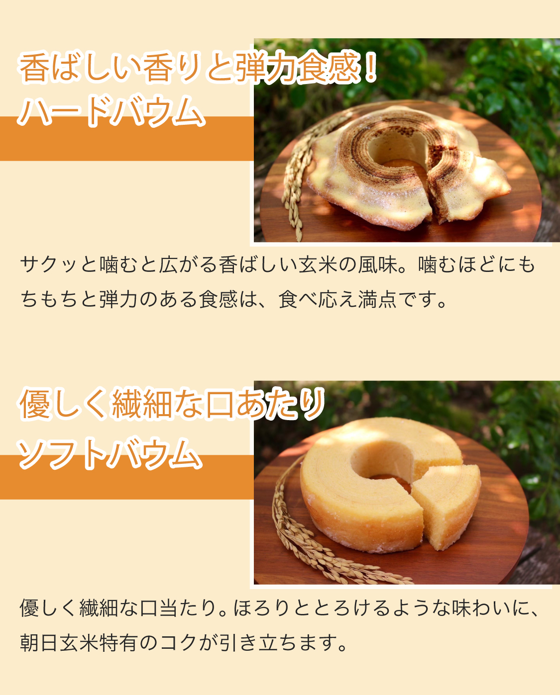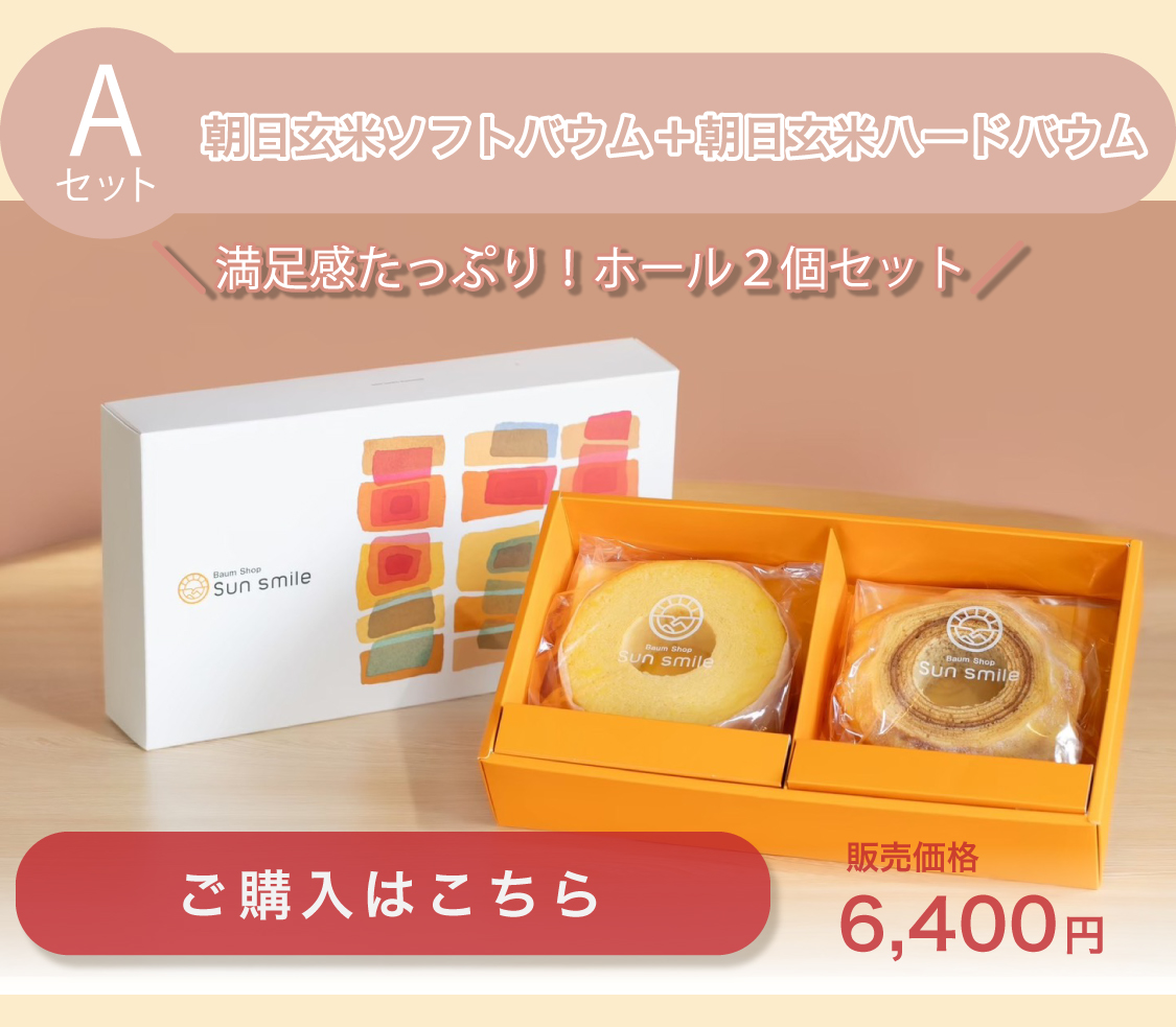 【贈答品におすすめ】” グルテンフリー朝日玄米バウムクーヘンセット”(Aセット:朝日玄米ソフト&ハードホール)