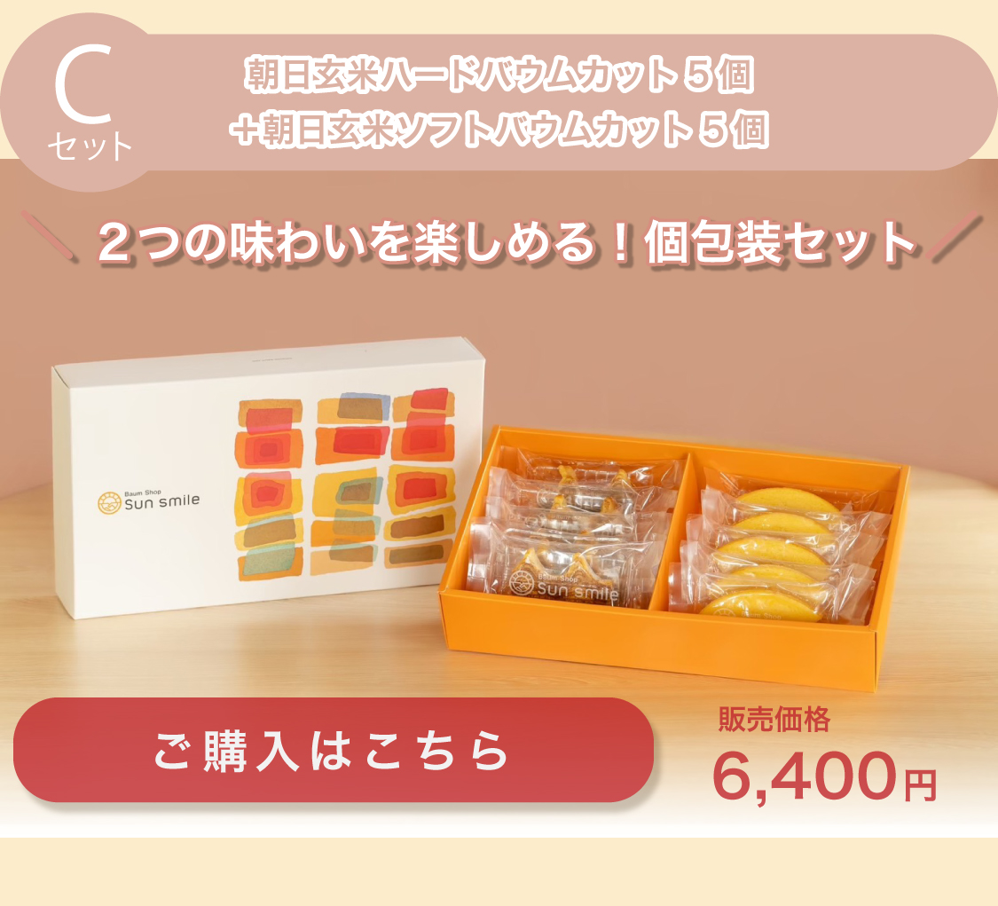 【贈答品におすすめ】” グルテンフリー朝日玄米バウムクーヘンセット”(Cセット:朝日玄米ハードカット5個&ソフトカット5個)